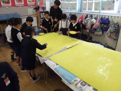 みんなで協力して、学習発表会で使う大道具や小道具作りをしました。