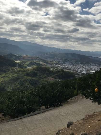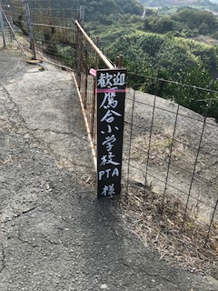 急な坂道を登りつめると、上ノ太子みかん園です。「鷹合小学校PTA歓迎」の札が迎えてくれました。大阪平野を一望でき、社会の勉強にもなりました。