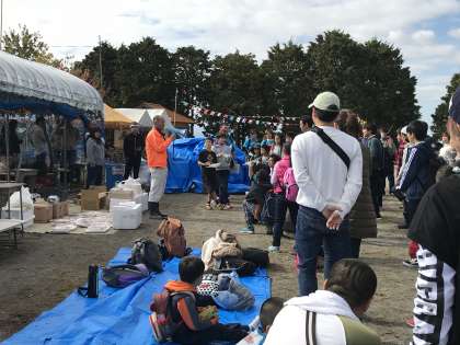 頂上の広場では、校友会の方々が、バーベキューやくじびきの準備をして待ってくださっていました。