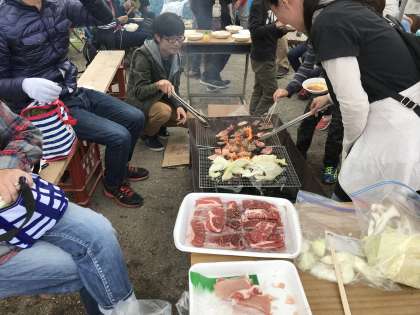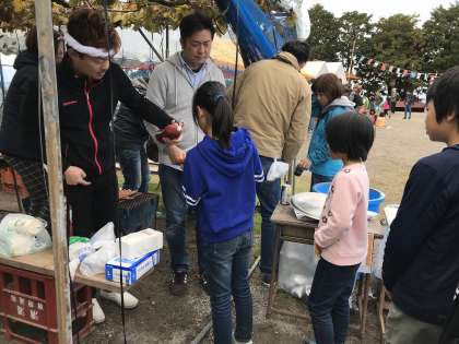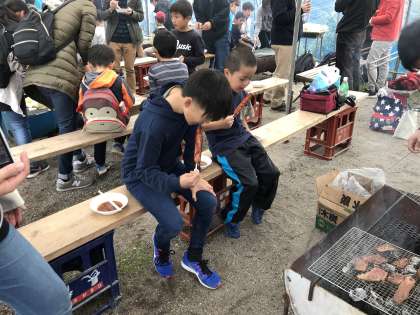 待ちに待ったバーベキューです。保護者の方々が焼いてくださる中、次々にお肉を頬張っていました。子どもには、フランクフルトや焼きマシュマロもあって、みんな1列に並んでもらっていました。おいしい笑顔でした(^O^)