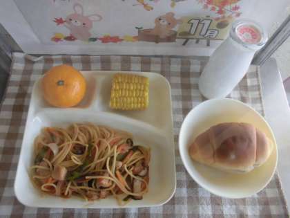 午前中、リハーサルを頑張って、また他学年の発表を参観し、おなかがぺこぺこだったと思います(笑)パクついていたことでしょう(^O^)