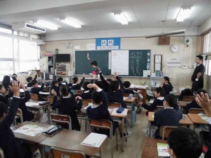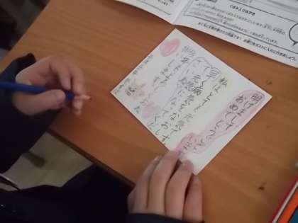 昨日に引き続き、中西局長さんと西山局長さんに来ていただき、「はがきの話」や「年賀状の書き方」を教えていただきました。子ども達は、局長さんの話術に引き込まれ、熱心に学ぶことができていました。