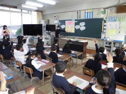 よその学校の校長先生や算数部の先生方が参観される中でしたが、ふだんの実力を発揮して、イキイキのびのび学習することができていました。