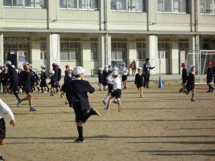 今朝も凍てつく寒さでした。運動委員会による体育集会の内容は、「ふえおに」でした。最初は5年生が鬼になりました。みんな運動場いっぱい走り回って、いつのまにか体もホカホカしてきてました。