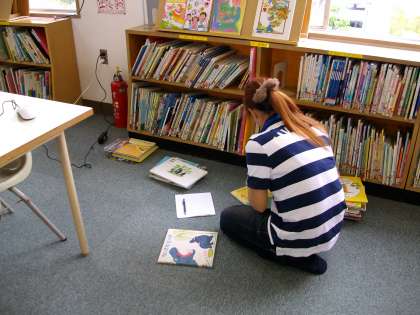 今日は、PTA図書委員会、図書館ボランティアの皆さんが図書の整理に来ていただきました。本校は寄贈の図書も多く、冊数も他校よりかなり多いです。