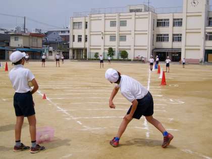今日・明日と運動場の全面を使って、ソフトボール投げと50メートル走の記録を計ります。