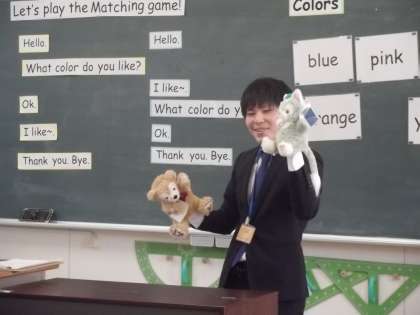 2年生では、2学期の好きな動物を尋ねる学習の応用として、好きな色を尋ねる学習に取り組みました。