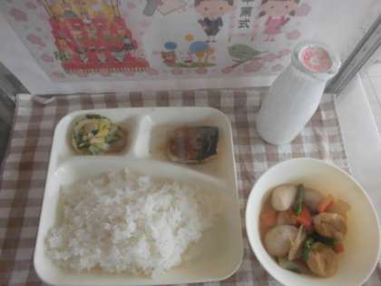 職員室に特別教室の鍵を返却にきた2年の男の子に「どれが一番おいしかった?」と感想を聞くと「おさかな!」と答えてました。「教頭先生と一緒やね。教頭先生は3切れも食べたんだって」と教えたら、笑っていました(^o^)