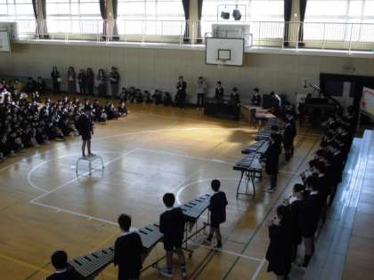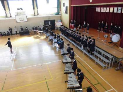 次は、6年生から在校生へのお返しのプレゼント。歌と合奏の発表でした。