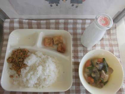 本日の献立 ・鶏肉とじゃがいもの煮物