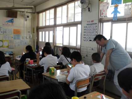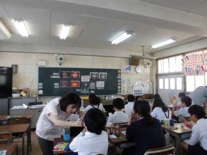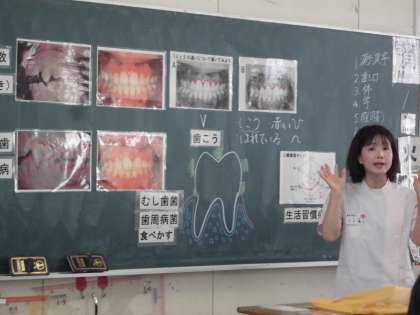 本日、歯科衛生士の先生方に来ていただき、6年生で「歯と口の健康教室」を実施しました。2年生の頃にも、正しい歯の磨き方を習っています。今回は、もう少しレベルアップした内容で、唾液の働きや歯周病の怖さなども教えていただきました。