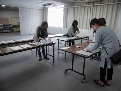 本日、早速地域委員さんが「黄色いママさん・パパさん」の編成替えの仕事をしてくださいました。6月からの実施の分です。非常に細かくややこしい作業ですが、コツコツとけれど和気あいあいで作業を進めていらっしゃいました。