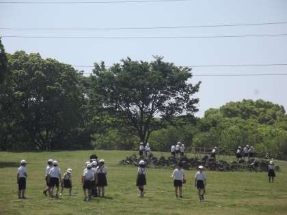 汗をかいたら、木陰で一休み。しばらくすると、また元気に駆け回っていました。