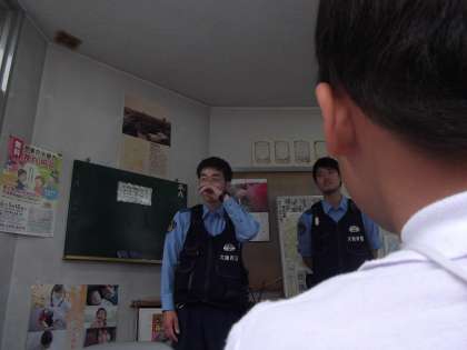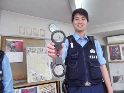 「鷹合交番」です。おまわりさんが、警棒や手錠も見せてくださいました。悪い人をつかまえてくれる正義の味方です。かっこよかったですね。