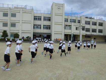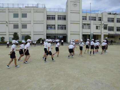 鷹合地域は上町台地の上にあるので、津波の被害は沿岸部のようなことはないと思われがちなのですが、大津波は川を逆流してきます。到達までには、2時間ほどの時間があると予想されているので、校舎内の安全が確認されてからの避難となります。特に新校舎側は安全だし、旧校舎側も耐震工事がされています。でも、割れた窓ガラスが足元に散らばっているかもしれません。そのようなことを想像しながら、津波から避難します。