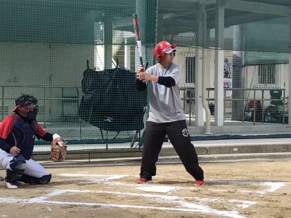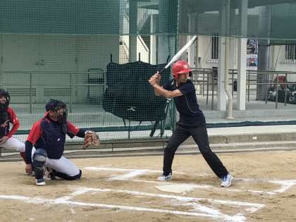 4人のバッターボックス姿です。やっぱり野球部の高倉先生、決まってますね(笑)