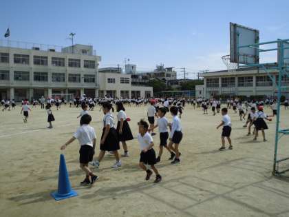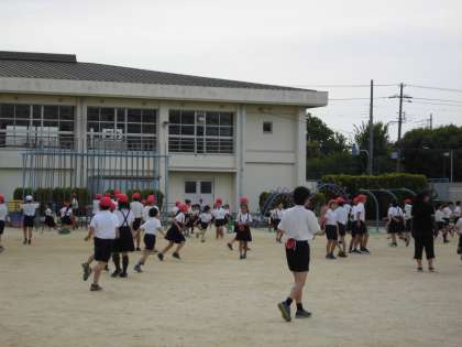 昨日雨で流れた児童集会。本日実施です。運動委員会による「しっぽとり」