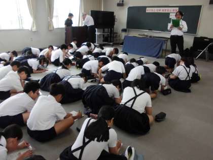 後半は、誘拐等の犯罪から身を守るために、「いか・の・お・す・し」として、ふだんより教えられていることを再度確認しました。昨年度の大阪における「声かけ事案」は800件を超えたそうです。自分の身は自分で守る、と言いますが、今一度気持ちを引き締めて、非行や犯罪被害から自分を守ることを考えていってほしいです。ご家庭でも、話し合ってください。