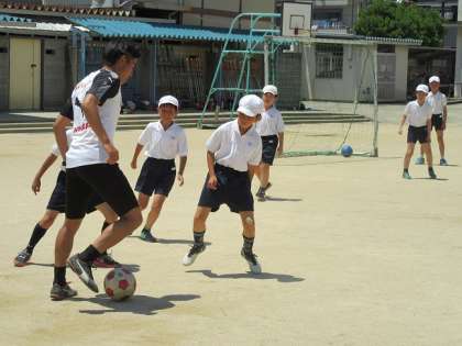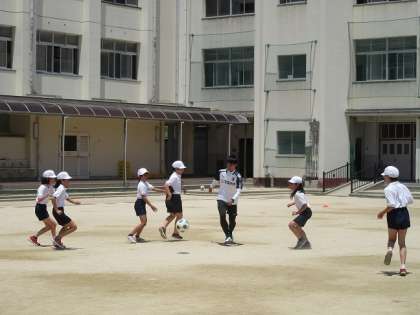 ボールに慣れてきたらゲームです。男女それぞれに分かれて、コーチと対決しました。