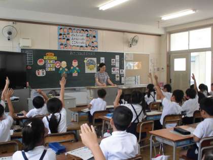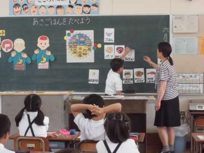2年生は、「あさごはんをたべよう」という内容で栄養指導がありました。朝ごはんを食べると、3つのスイッチが入ります。「あたま」「おなか」「からだ」のスイッチです。そして、そのスイッチが入るためには、睡眠をしっかりとった規則正しい生活が必要です。