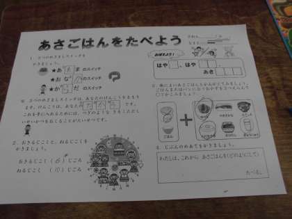 自分たちで考えた理想的な朝ごはんを選んだり、ワークシートでまとめたりしました。「はやね」「はやおき「あさごはん」を守り、3つのスイッチが入る生活を心掛けるようにしましょう。