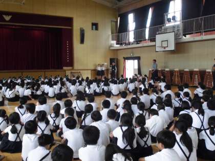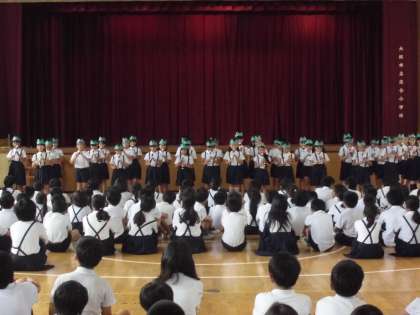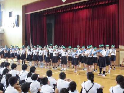 本日の児童集会は、3年生の学年発表でした。全員カエルのお面をつけて、冒険に出発という想定で、群読とリコーダー&鍵盤ハーモニカの合奏を披露してくれました。リコーダーは3年生になってから学びだしています。まだ指が小さくて、運指が難しい時期ですが、きれいな音色を出すことができていました。