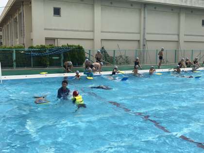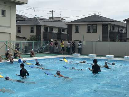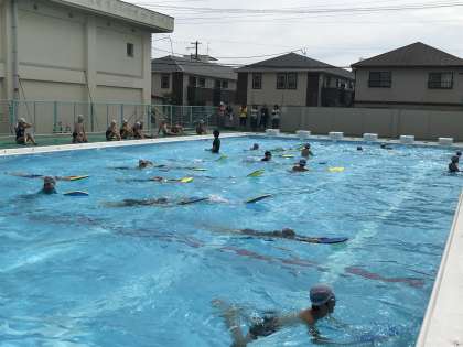 子ども達は、大きく水をとらえるクロールや、あおり足にならないように気を付けて、しっかり伸びて進む平泳ぎの練習を頑張っていました。