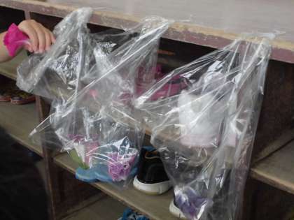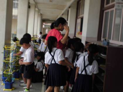 2組も、自分たちのアサガオの花を色別に集めました。今日、咲いていないお友達に分けてあげられるように、たくさん集めました。葉っぱも集めました。