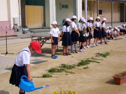 児童集会(栽培委員会・美化委員会)がありました(6月19日)