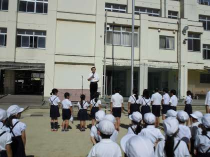 以前、ホームページでお知らせした子どもソフトボールチームに対する表彰を、校長先生から今日の朝会でしていただきました。全校児童から健闘を称えて拍手が送られました。これからも、精一杯頑張ってほしいです。