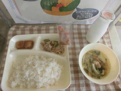 ゴーヤが出てきました(笑)給食のゴーヤは、全然苦くありません。かつお節をかけるともっと苦くなくなります。小山先生が、間違えてあつあげにかけてしまわないように、校内放送で教えてくださっていました。(^_^;)