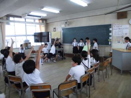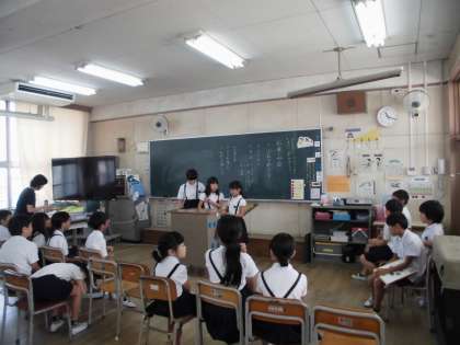 4年3組は、クイズを出していました。