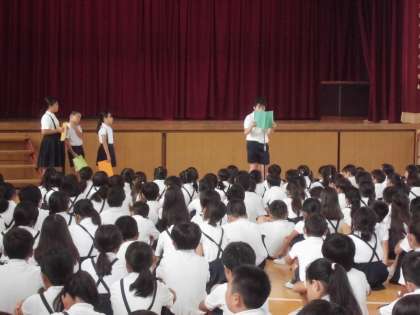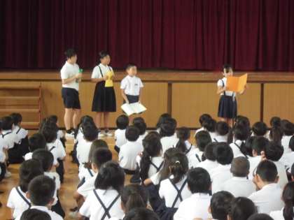 続いて、1学期を振り返って、がんばったことや心に残ったことを、3年生と6年生が発表してくれました。