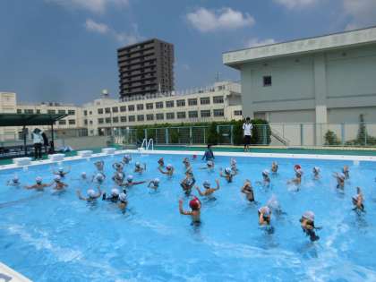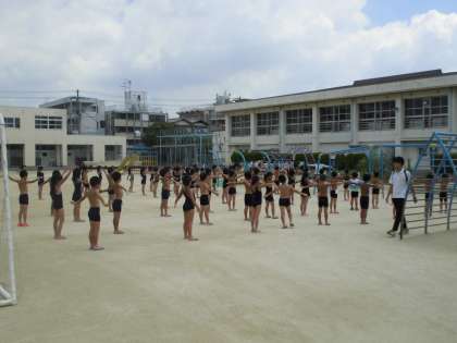 さて、暦どおりの暑さです。少しでも涼を求めて(?)夏季プール指導にたくさんの子ども達が参加しました。水温34度でした。お風呂やさんの水風呂の方がよほど冷たいですよね。それでも、気持ち良さそうに楽しんでいました(^O^)