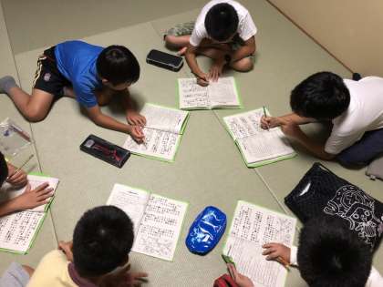キャンプファイヤーの興奮冷めやらぬところですが、各部屋では、クールダウンも兼ねて「思い出のページ」を記入しました。