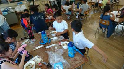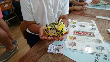 昼食はビピンパです。。コチュジャンやキムチをいれて、おいしそうに食べていました。工作ではホランィ(トラ)の貯金箱を作りました。自分のイルㇺを貼って仕上げました。