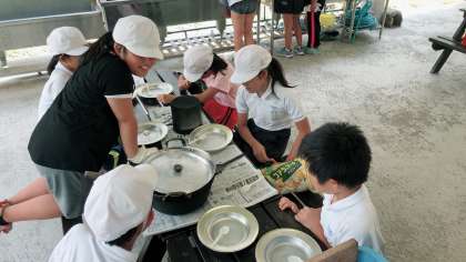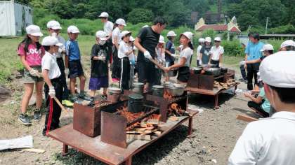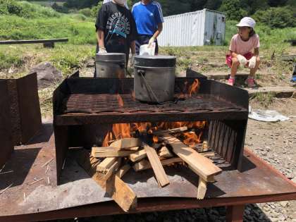 煮えたかな?飯盒で炊くごはんは、おこげが美味しいよ。