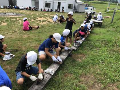 林間学習最後の活動は「思い出の焼き板作り」です。