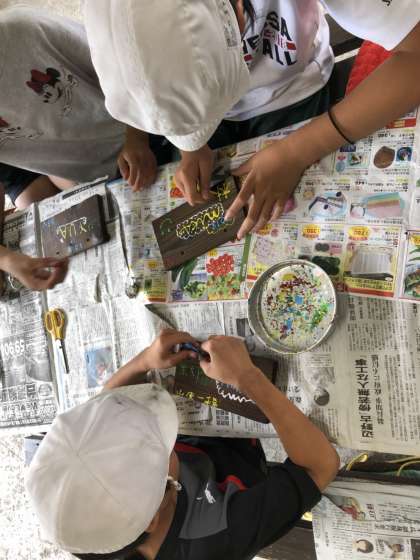 絵や文字など、それぞれが好きなようにレイアウトしながら作成していきました。いいお土産の完成です。