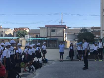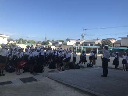 校長先生から、出発式での三つの目標の自己評価を聞かれました。「楽しい思い出をいっぱい残せましたか?」が全員最高得点のようでした(^O^)