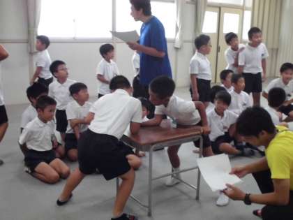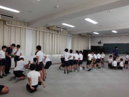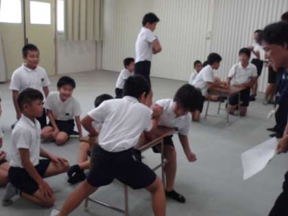 15分休みに多目的室で実施しました。「う〜〜ん!」と力の入る勝負のペアや、「Ready Go!」「トリャ!」と一瞬で決定のペアもありました。