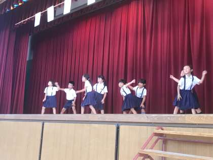 1年や2年の合同チームによるダンス。一人でハワイのフラダンスを上手に踊った子もいました。
