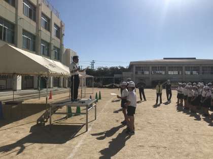 運動会用に、朝会台の設置場所を替え、いつもとは違う向きで朝会がありました。校長先生から「江戸しぐさ」についてのお話をしていただきました。「傘かしげ」「うかつあやまり」「七三の道」「時泥棒」いずれも、人と人とがお互いに気持ちよく生活していくための知恵の表れです。子ども達によく分かるよう、具体的に場面を呈示して教えていただきました。