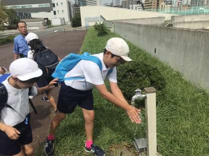 塩素を入れて消毒もされた、できたてほやほやの安全な水で、手を洗ったり、飲んだりしました。電車から見えていた淀川の水が、この状態になるまで約12時間かかるそうです。