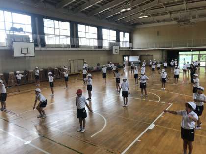 引っかかることも、もちろんあります。河野も本日たまたま入り込みをしていたので、チャレンジしました。ノーミスは1回だけ(^_^;)。なかなか、難しいです。毎日、ひたすら練習が必要だと思います。何人かは、「家でも練習している」と、手を挙げていました。偉いです。得手不得手もあるでしょう。「できない」とあきらめるのではなく、「やってみよう」という気持ちと行動が大事です。