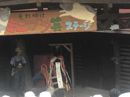 その他カタカタを押したり、ハードルを4本超えたり。最後はくす玉を割って「ありがとんございました」と垂れ幕がでてきました。のんびりとした癒されるひとときでした。