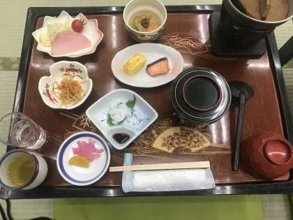 朝食を朝からしっかりいただいて、扇芳閣ご自慢「メダカの学校」散策に向かいました。