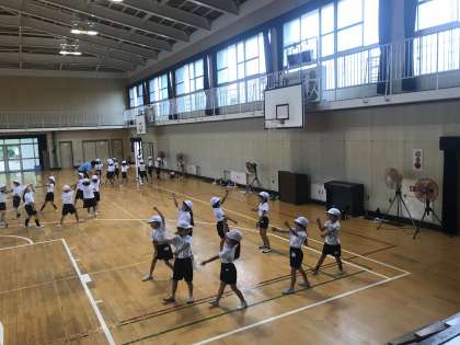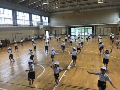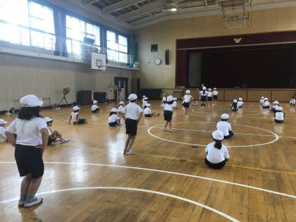 1年生の団体演技「ぼうけんにしゅっぱつ!!」の練習風景です。
