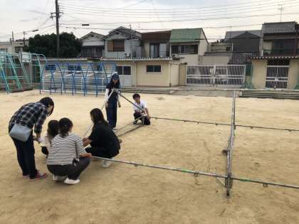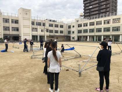 10月3日水曜日放課後に教職員とPTA実行委員でテント設営を行いました。