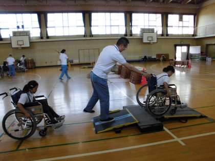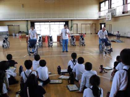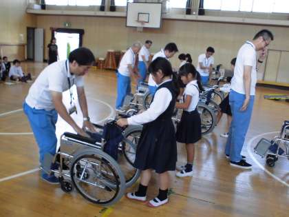 本日、3年生は、大阪市リハビリテーションセンターの方々を講師にお招きして、「車いす体験学習」を実施しました。